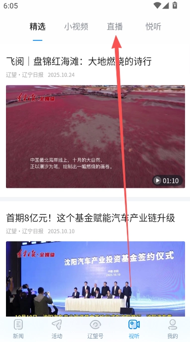 1、辽宁日报电子版里,直播内容的主要集中区域是视听版块。