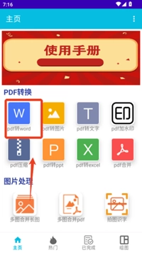 1、打开软件后,选择对应的转换功能(如Word转PDF、图片转PDF等),接着从手机相册或文件夹中导入待处理的文件。