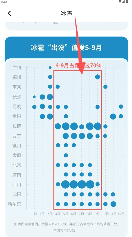 3、上下滑动可查看该现象的详细图解及数据统计,例如高发月份分布等内容。