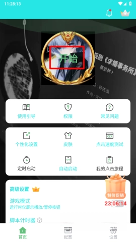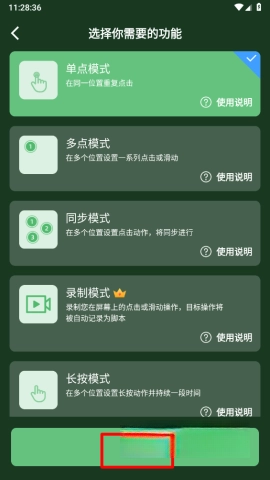 5、接着选择想要的点击模式,并点击“开始”按钮。