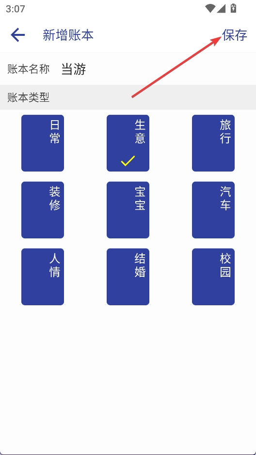 3、选择账本类型,输入账本名称,点击保存