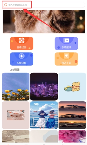 2、在搜索框输入关键词,查找壁纸。