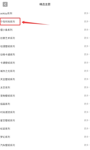 4、在精选主题,点击个性时尚系列。