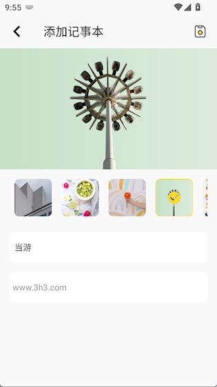 3、点击“+”按钮添加记事本,输入名称与描述内容,挑选合适的封面样式,最后点击右上角的保存按钮完成操作