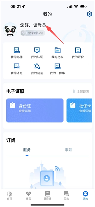 2、在天府通办首页,点击底部导我的选项,进入个人中心页面。