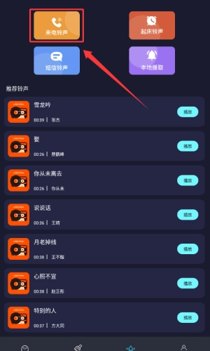 3、在铃声板块,应用每日都会精选并推荐当下最潮的酷炫铃声,用户能够挑选心仪的音效来完成设置,让自己的来电与通知提示更具个性化。