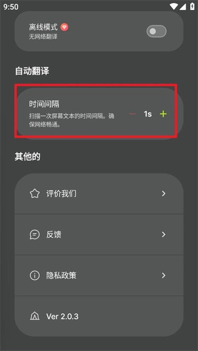 3.还还可以自由的设置翻译的间隔时长。