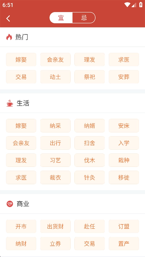 2、传统老黄历:支持传统老黄历的查询服务,具备择吉日功能,能够查看当日的宜忌事项、各时辰的宜忌情况等,是您在嫁娶、乔迁、开业等重要事务中挑选吉祥日子的实用助手。