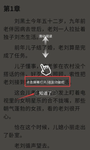 2、滑动阅读小说,点击屏幕收起功能栏。