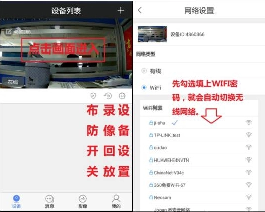 4、创建设备密码成功后,击设备设置-网络设置-点击WIFI列表家里的WIFI名称,填上WIFI密码后,切换WIFI成功,就可以拔掉网线了。