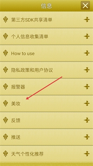 2、在功能列表里找到并点击【美妆】选项,即可进入化妆指南的分类页面。