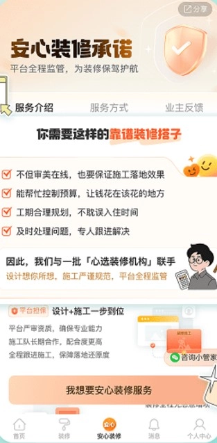 提供在线咨询和线上商城功能,满足家装需求。