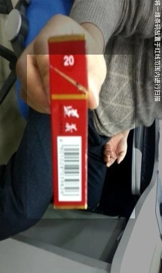 请把中间的红线对准卷烟条码的中间位置,手机就会自动显示出对应的卷烟。