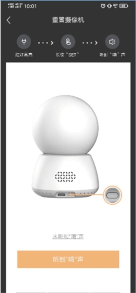 长按设备背部的set按键,待听到“滴”的提示音后,点击“听到滴声”按钮。