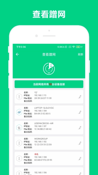 之后点击查看蹭网,就能看到路由器下所有连接了WiFi的设备。