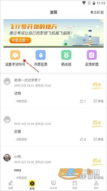 打开软件完成注册登录操作后,进入“发现”界面并点击“设置考试时间”选项。